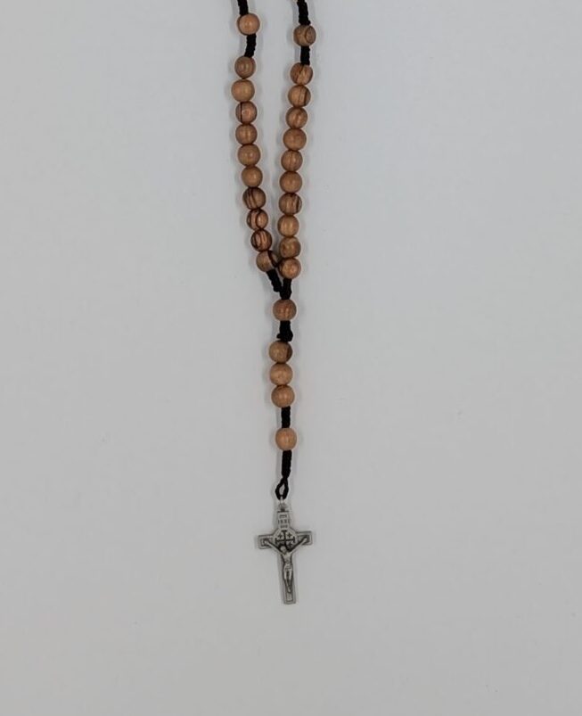 MATÉRIAUX: BOIS D’OLIVIER DE BETHLÉEM ET CRUCIFIX EN ÉTAIN