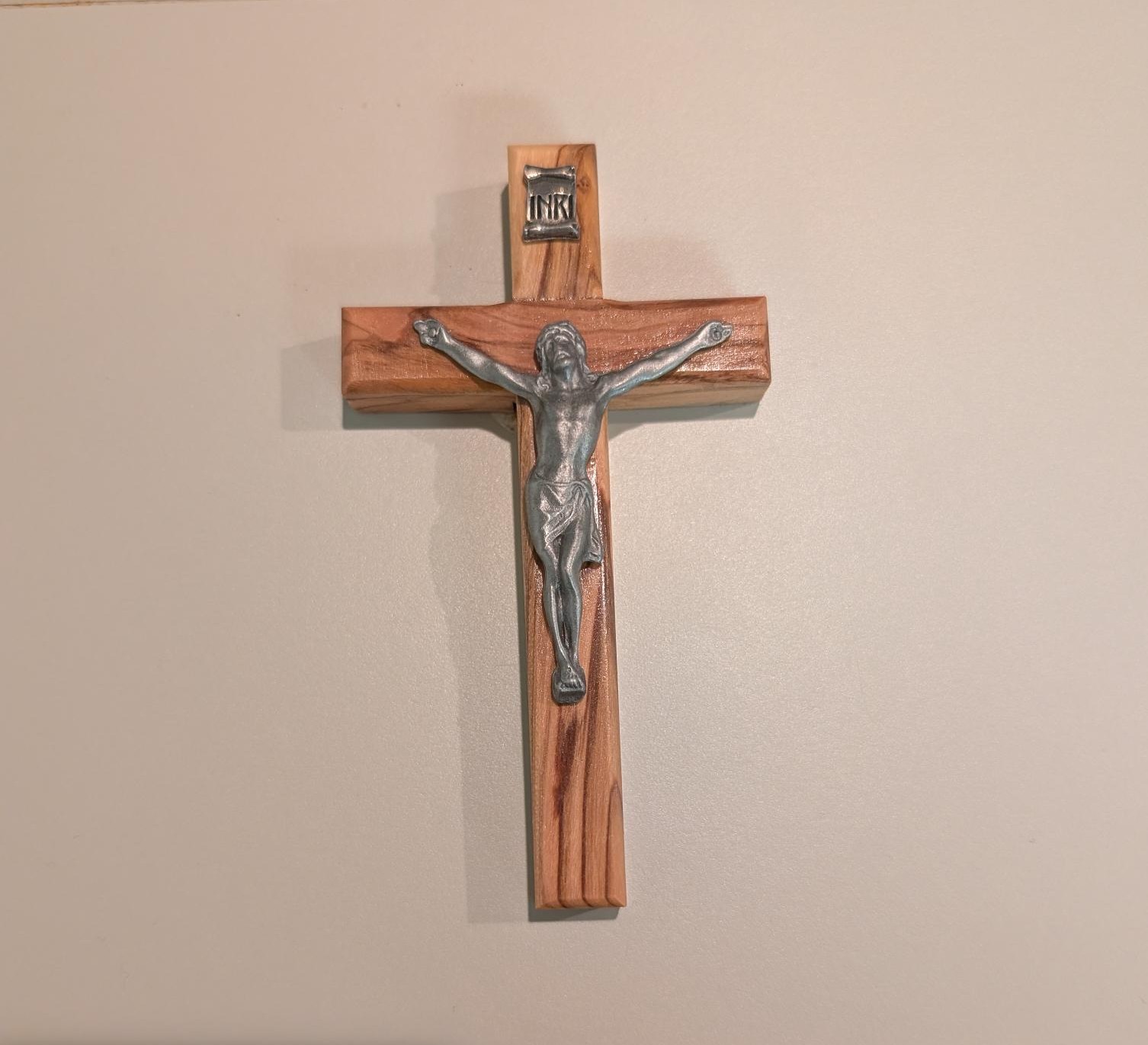 HANDCRAFTED CRUCIFIX USING PRUNED BRANCHES FROM OLIVE TREES GROWING ON THE HILLS OF BETHLEHEM.